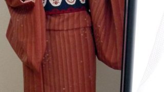 ウールのきもの 縞風染めウールの着物 ウールでも織りじゃなくて染めなので、何のジャンルに入れたらいいのか迷いましたが、小紋にしておきました。仕事の休憩中に近江町市場をふらふらと歩いていましたら目に付いて購入したものです。サーモンピンクの地に、ベージュの点々で縞模様を描いてありま... きものウールのきもの手作り手作り帯染めのきもの