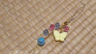 陶器製のカエルです。上下に鈴がついているので、身に着けるとにぎやかに音が鳴ります。雨の日につけたり、5月~6月のモチーフとして使っています。つばめの帯留めと組み合わせて、5月のコーディネイトです。