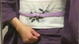 柿色の付け下げ小紋 X Facebook LINE Pinterest コピー 2025.06.30 綸子地で地紋に紅葉と菊を織り出し、柿色の地に桐の花紋(?)と菊の花紋(?)をお行儀よくならべた、付け下げ小紋です。上にいくにつれて柄の間隔が変わっているのにお気づきでしょうか? それにしても派手…。