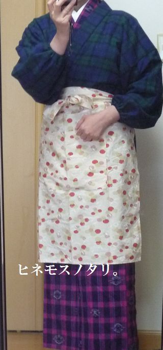 ウール着物の前掛けありバージョン。