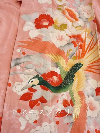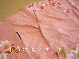 地紋入りの綸子地の、元は振袖だったものと見られます。