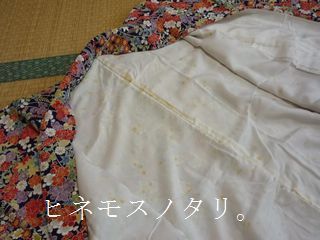 ハンガーラックにかかっていた、ちょっとランクの上の着物なんですが、胴裏のシミがひどいです。