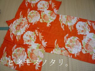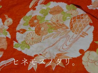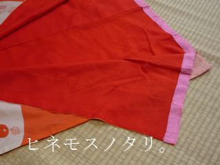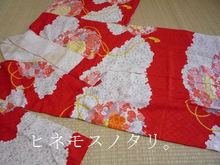 こちらも地模様入りの、朱色の長襦袢。