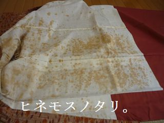 現代ものの胴裏はカビやシミ防止の加工がされているので、正絹でも白いままなのだそうなのですが、少し時代が古いと箪笥に入れておくだけでこうなってしまうそうです。