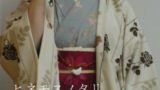 クリーム地に青海波と蝶の大柄小紋。