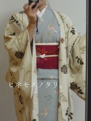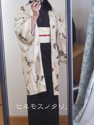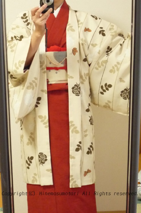 ショップの着用見本は着物だったのでどちらにしようか散々迷いましたが、 この反物なら着物よりも羽織に向く柄ではないか、と考えてお願いしました。