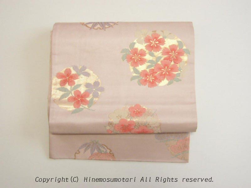 淡いピンクの地に桜の花の丸が刺繍されています。