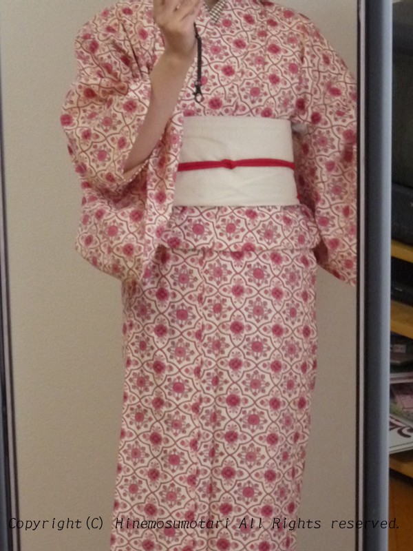 一応自分の胴回りに合わせて作ってますが、着物の厚みによっては多少ゆるみが生じることがあります。