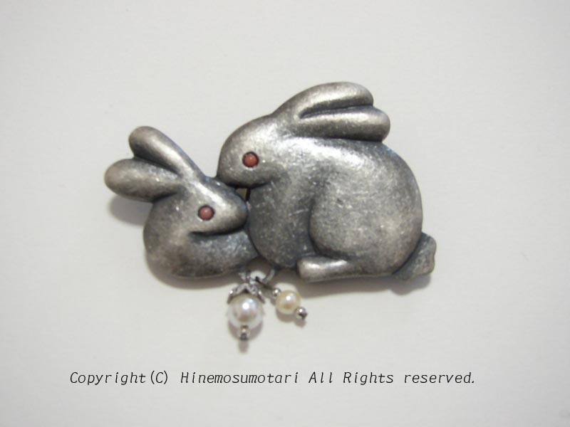 仲良く寄り添ったうさぎがかわいい帯留めは、クリップ式。