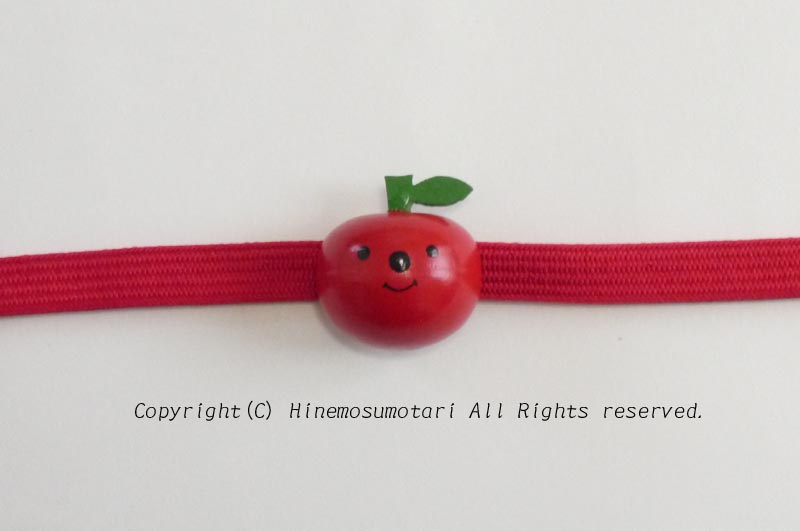 サボテンやきのこ等ありましたが、帯留め金具の大きさに合わせて、丸いフォルムのりんごをチョイス。