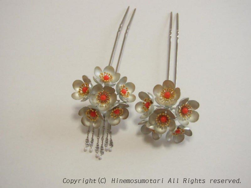 日本髪用の前かんざし一対なのですが、実は同じかんざしです。