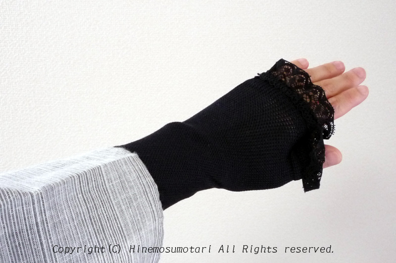 UVカットのアームカバー X Facebook LINE Pinterest コピー 2025.05.01 夏用の日焼け防止アームカバーです。シンプルな黒に縁にフリルがついています。淡い色の夏着物が多いので、コントラストがきれいかと思いまして…。盛夏は暑いのに耐えられないので春~初夏向きかもしれません。