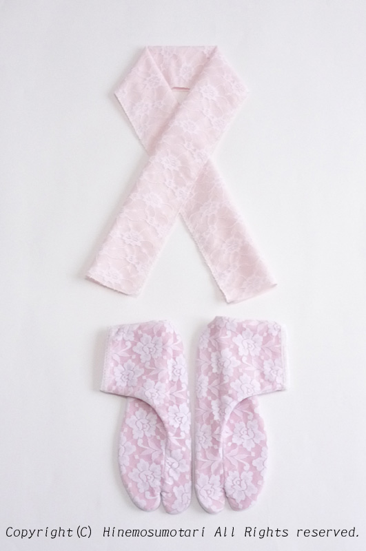 淡いピンクの無地布に、レースを縫いつけた半衿です。