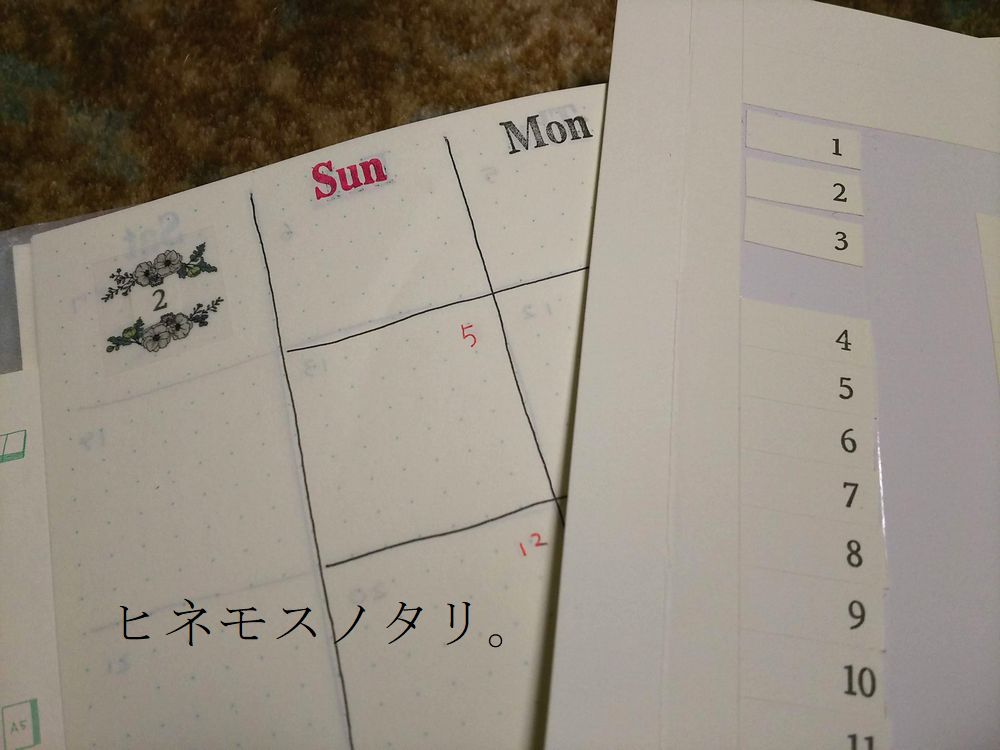 月の数字はMDノートに付属のインデックスシールを切って使いました。