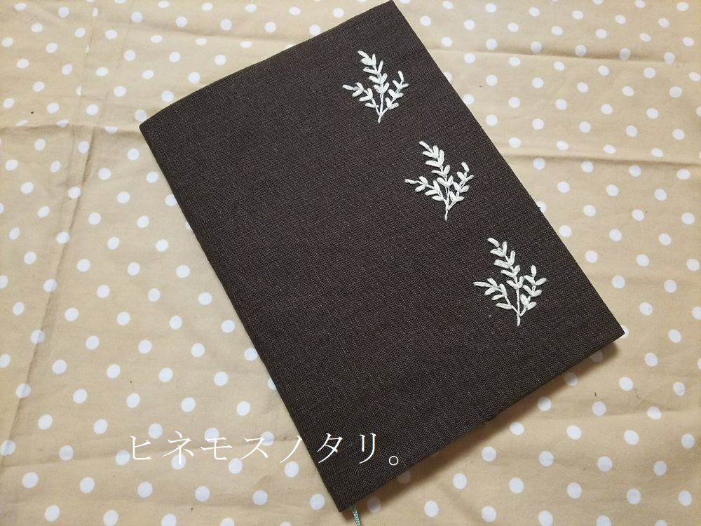 2023年の手帳カバーは、リネンの生地に葉っぱの刺繍を施しました。