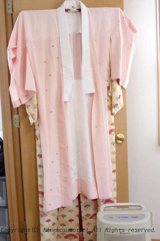 正絹の着物にこれはどうなのかわかりませんが、少なくとも湿気を含んだまま片付けるよりはいいかな、と思ってかけ続けています。