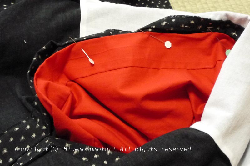 着物の袖つけ部分に裏から縫い付けます。
