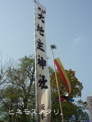 最初の写真の神社の幟の下にいたら