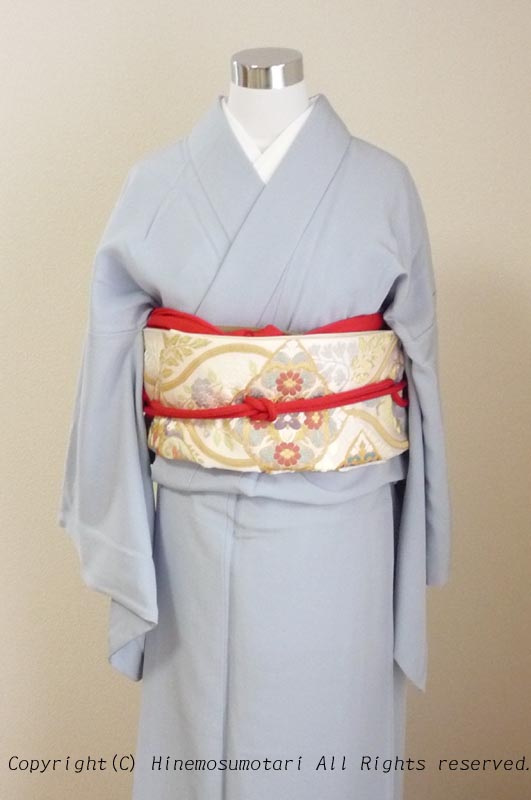 それに対して水色の色無地はちりめん、八掛けは共布となんともあっさりした仕立てです。