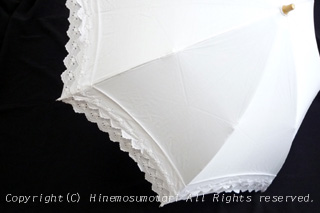これは晴雨兼用とかではなくて、晴れの日専用、コットンの生地張りのお嬢様タイプの日傘です。