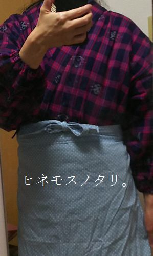 これに、昨年まで着物として着ていたウール着物をリメイクした上っ張りを合わせました。