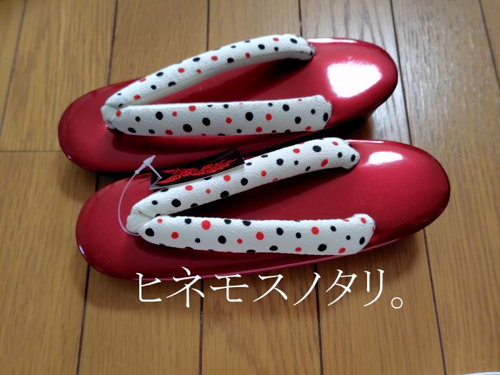 鼻緒はいくつも組み合わせがある中で主張せず着物と合いそうな赤と黒のバブルドットにしました。