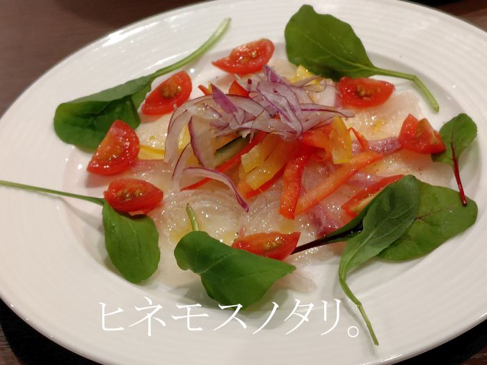 夕食はハウステンボス内ピノキオにて食べたカルパッチョ。