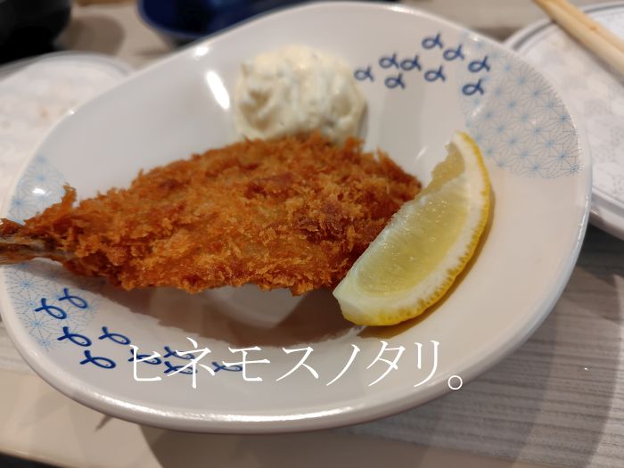 せっかくなので長崎限定メニューのアジフライを食べました。