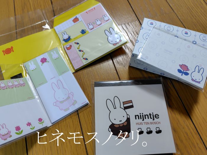 左よりミッフィーのふせんブック、箱入りメモ、メモパッド。