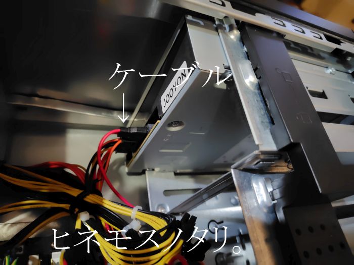 SATAケーブルというのを抜き、上の固定しているネジを外します。