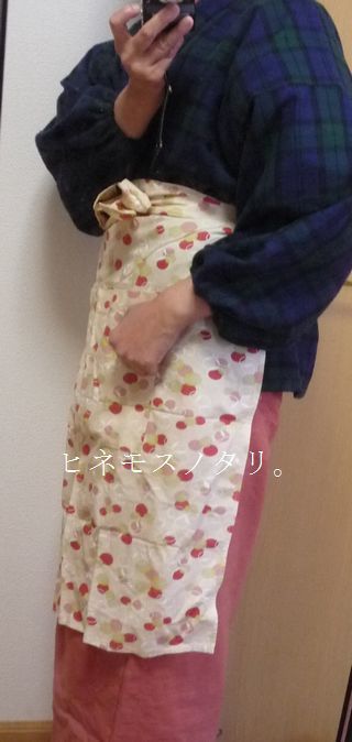 昨日と同じ上っ張りに、前掛けは違うものを締めました。